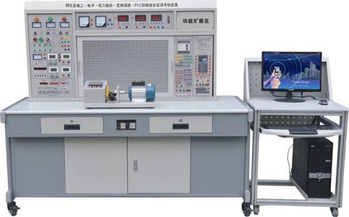 网孔型电工电子电力拖动变频调速PLC控制综合实训装置是为配合我国职业教育和就业人员实际操作、培训、鉴定的需求,我公司综合了大中专院校、职业院校、技工学校的《电工技能训练》《电工实训》《电气控制技术》《电力拖动控制线路与技能训练》《电机及拖动基础》《工厂继电器接触控制》《PLC原理及应用技术》《变频原理及应用技术》《电子技能训练》等相关科目的实验及实训教学内容而研发了电工实训装置。装置电工部分采用网孔板结构,训练与鉴定接近工业现场,外形美观、结构合理,牢固、耐用,实训方式灵活,增加元器件即可增加实训项目,可扩展性强。装置设置多重科学安全保护措施,确保设备和操作者人身安全,非常适合各大中专院校、职业学院、技工学校和各类培训机构训练学生电工电子基本技能、专业技能和变频器、PLC综合技能,也可进行电工等级考核和技能鉴定。