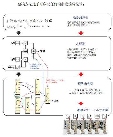 通信原理实验箱,通信系统原理实验室主要设备采用设计型开放式设计理念,跟以往验证型实验设备有本质区别。整个系统采用基于方框图的模块化设计,以数学函数方框图形式来确定硬件基本模块,灵活组合模块以实现任何调制或编码技术。