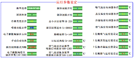 动画模式:触摸屏或软件连接模式下:可显示压缩机排气温度、吸气温度、冷凝温度、蒸发温度,可根据温度实时调节机组过冷度。过热度。