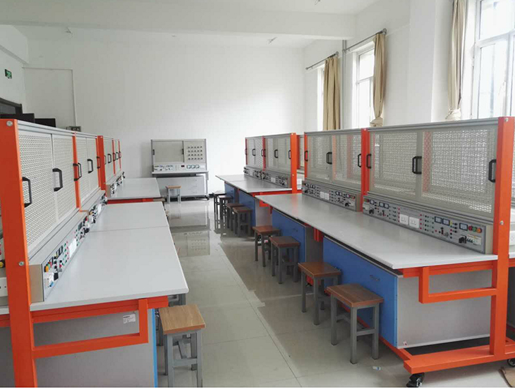 2、实训桌桌面采用25mm麻灰色高密度层压板封边特制,有效提高绝缘等级;实验桌底部装有至少4个导向轮,方便实训台架移动;