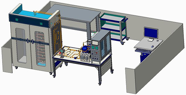 3、开放性:该设备设置了一个系统操作台,在库体一侧安装有可更换侧板,以便于学员在上述的操作台与侧板上安装制冷系统和电路系统等。