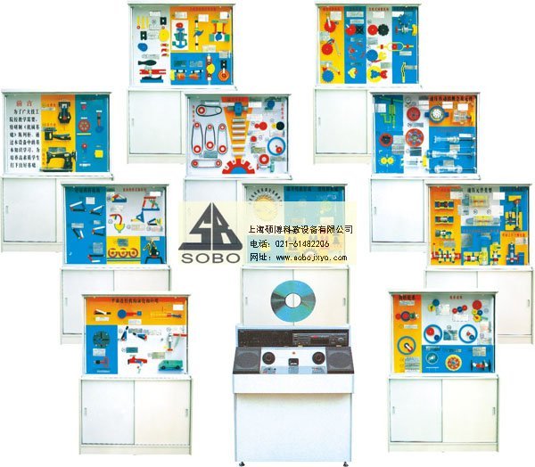机械基础陈列柜是根据大中专院校、职业学校的教学大纲设计的机械陈列柜,《机械基础》电化教学设备。总共10个柜及1个控制台,用CD光盘解说遥控控制,声控同步进行演示机械模型。通过演示可加强对机械专业学生的理论学习、使用范围增强认识,加深理解,是机械专业系不可缺少的理想教具设备。