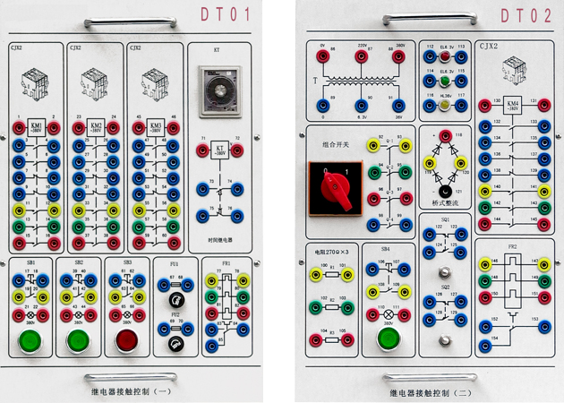 电工电拖综合实训设备用途: 适用大中专院校"电工基础"、"电工学"、"数电"、"模电"、"电机学"、 "电机与电力拖动"、"电气控制"、"继电接触控制"等课程的实验教学。并可扩展"可 编程控制器"及"电机变频控制"等实验内容。