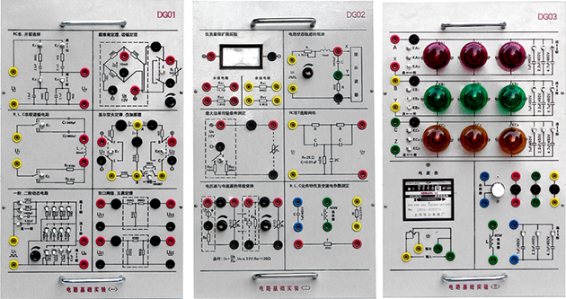 设有仪表量程扩展实验电路、电路状态轨迹的观测实验电路、最大功率传输条件测定实验电路、RC双T选频网络实验电路、电压源与电流源的等效变换实验电路、RLC元件特性及交流电参数的测定实验电路。挂箱面板正面印有原理图及符号,反面焊有相应元器件,使用方便、直观、可靠。