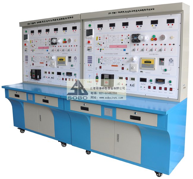 风光互补发电实训室,风光互补发电技术实验室,风光互补发电系统实训装置,学生可以在该平台上学习到太阳能、风能等清洁能源发电技术,同时还能利用实验装置资源学习到与新能源发电相关的储能、逆变、并网技术