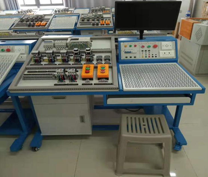 电工综合实训考核设备,电力拖动安装平台,维修电工综合实训考核平台由钢板制作的电工考核平台、网孔板设备和电源装置等组成。根据教学和实训的需要,选择不同的元件、器件和部件,可进行不同课程模块,不同项目的实训。使用完毕的元件、器件和部件,从设备上拆下,集中保管,损坏和丢失少。设备配备漏电保护、过载和电路保护,保障人身安全和设备使用安全。