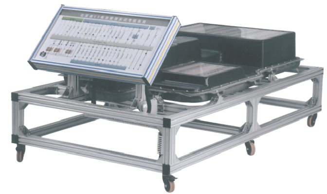 动力电池包及BMS总成、紧急断电开关、维修开关、霍尔电流传感器,直流接触器(包含充电继电器、总正继电器、总负继电器、预充继电器),放电控制继电器与放电负载,单体电池充电器,一体化全铝合金型材搭建的移动台架(1500×700×1700mm 带自锁脚轮装置,带安装检测端子的原理面板,面板1448×940mm)、设备操作说明书。