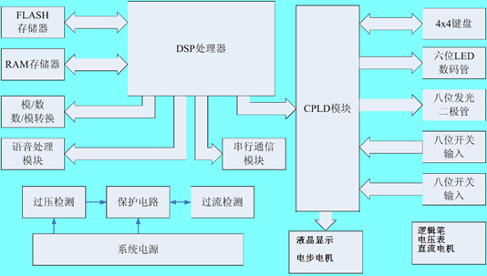 1、中心处理模块。主要包括DSP微处理器TMS320VC5402RAM(CY7C1021)FALSH(SST39LF200A),是整个实验验装的核心部分,负责整个实验系统各模块间的控制。