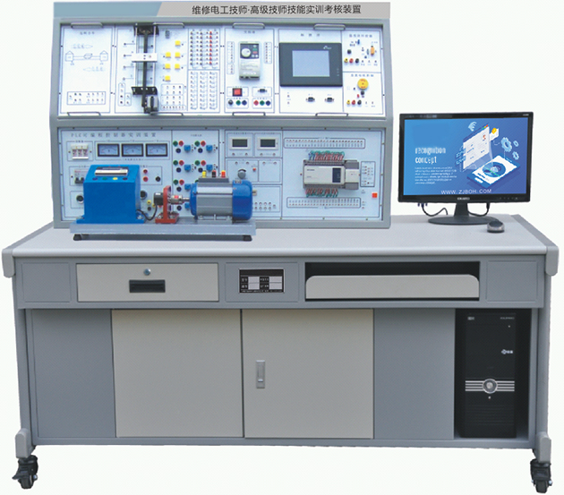 维修电工技师·高级技师技能实训考核操作平台是根据劳动和社会保障部颁发的"工人等级标准"和"职业技能鉴定"的要求而设计的,它适用于《初级维修电工》、《中级维修电工》和《高级维修电工》教材要求的电气控制线路,通过装置配备的PLC可编程控制器和变频调速器及相应实训模块的训练,快速掌握课程要求的实际应用技术和操作技能,具有针对性、实用性、科学性和先进性,它能满足中、高级维修电工考核大纲的要求,是各劳动职业技能鉴定部门、大中专院校、技校中、高级维修电工技能考核的理想设备。