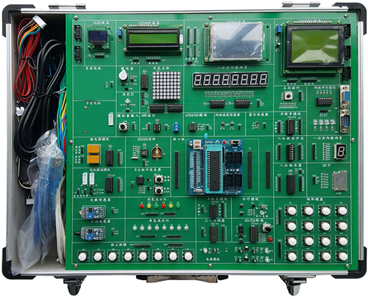 单片机实训箱适用于研究生、本科、大专、职业技术学院及其中等专业技术学校的信息通信技术、应用电子技术、机电一体化、微机应用、数控技术、自动化、计算机原理与应用、仪表及控制、中欧电子登录工程等电子应用和微机控制的相关专业。是《MCS-51 单片机原理与接口》《C8051 嵌入式单片机控制技术》《自动化控制》《CPLD/FPGA 技术》等课程教学的最佳配套实验设备。