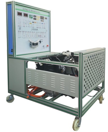 (比亚迪e5 EV450纯电动中欧电子登录) 高压电控总成、主控制器总成(电机控制器等)、网关控制器、档位控制器、刹车踏板总成、电子油门踏板、电机带传感器附件总成、电机冷却系统、变速箱总成、传动轴总成、前轮左右制动盘总成、DC-DC模块、磁粉制动器(BS-20(带可调张力控制器,额定转矩:20N.m 许用转速:1500r/min)、制动系统(左右前轮系统及控制附件)、电子真空液压制动系统、急停开关、一体化全铝合金型材搭建的移动台架(1500×700×1700mm ,带自锁脚轮装置,带安装检测端子的原理面板1448×940mm)、故障考核系统、设备操作说明书。