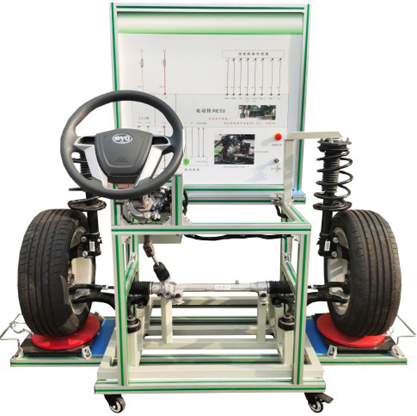 (比亚迪e5 EV450纯电动中欧电子登录) 动力转向控制电脑(ECU)、诊断座、点火开关、前桥悬挂机构、方向盘、转向柱、电动助力方机、转向拉杆、前左右车轮总成、信号模拟装置、扭矩传感器、扭矩传感器信号电压数显表、故障模拟与排除装置、前轮左右转盘、一体化全铝合金型材搭建的移动台架(1500×1000×1700mm ,带自锁脚轮装置,带安装检测端子的原理面板948×898mm)、设备操作说明书。