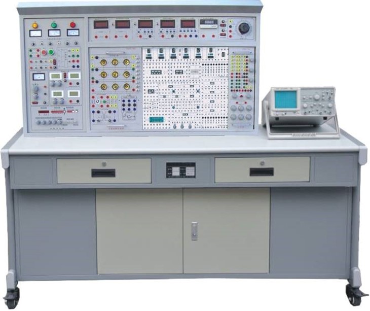 电工电子技术实训平台是我公司吸收国内外同类产品合理的实训方法,先进、科学的实训手段并加以消化、整合、提高而研制的新一代实训装置。实训内容根据教育部"振兴21世纪职业教育课程改革和教材建设规划"的要求,并按照职业教育的教学和实训要求而设定,涵盖"电路分析""电工基础""电工学""模拟电子技术""数字电子技术""电机控制""继电接触控制"等课程的实训大纲要求,其适合普通高校、职业院校、技校、职校等实验室新建、扩建、更新换代,为学校迅速开设实训课程提供了理想的实训设备。