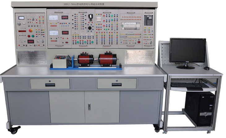 装置主要由控制屏、电机安装平台、三相异步电动机、直流电动机、步进电动机、交流伺服电动机、电器元件、直流开关电源、可编程控制器、通用变频器、直流电机调速器、步进电机驱动控制器、交流伺服电机驱动器、机械传动零部件等组成。