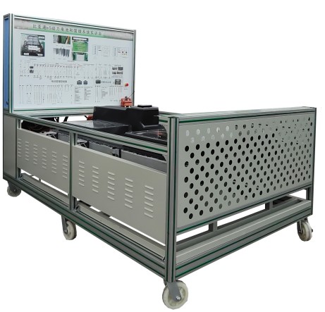 锂动力电池组、电池管理系统BMS、维修开关、辅助蓄电池(12V45AH)、高压配电箱、漏电传感器、车载充电机、国标充电插座与充电枪、直流接触器(包含充电继电器、总正继电器、总负继电器、预充继电器)、急停开关与电源总开关、一体化全铝合金型材搭建的移动台架(1500×700×1700mm