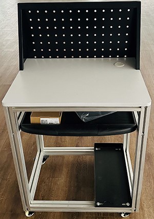 配置: 22、功能:工业铝型材框架结构,单工位,设有电脑主机位及键盘支架,用于放置编程电脑。