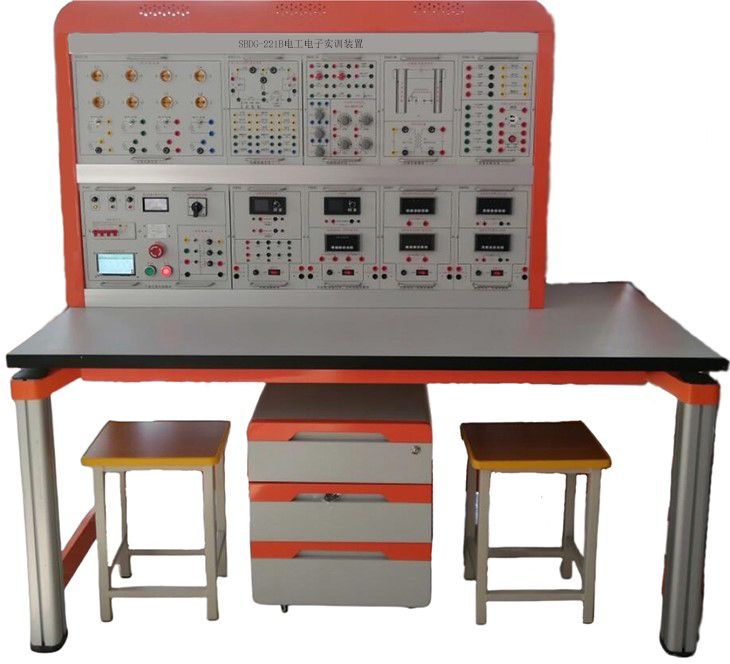 四、电工电子实训台主要配置及功能:由实验桌、实验台架、存储柜、实验挂箱组件、配件等组成。