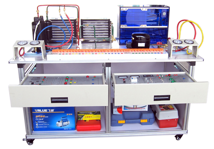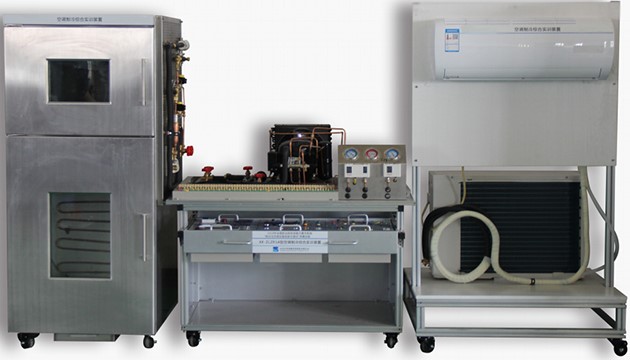 制冷与暖通实训室、水暖与空调实训室主要配备暖通技术实训台、中央空调综合实训装置、中央空调微机控制实验台、供暖系统实训设备、空调、制冷、换热综合实验台、循环式空调过程实验装置、热离心泵特性曲线测定实验台、水离心泵综合试验台、采暖模拟训练系统、制空气源热泵热机实训考核装置、冷空调设备实训台、空调技术实训台、暖通技术实训室以暖通空调设备为主,满足暖通空调专业相关的实训实验操作、材料设备的展示、设备系统安装展示、运行展示及现场教学等功能;制冷空调设备实训室以冰箱、分体式空调器拆装、移机、调试、故障模拟与排除等项目为教学内容,重在培养学生对电冰箱和空调器制冷系统故障诊断和维修能力和空调安装能力,同时进行“制冷空调系统安装维修工”的职业技能的考核和鉴定,可为校内、校外培训相应的中级和高级工;空调技术实训室以家用多联机空调系统设备安装、设备检修为教学内容,兼顾热水采暖系统安装、给排水管路制作实训操作等。重在培养学生对多联机空调系统的安装和故障诊断和维修能力,同时进行“制冷空调系统安装维修工”的职业技能的考核和鉴定等;制冷技术实训室主要有装配式冷库、现代冷库技术综合实训考核设备、冻干机等设备。暖通空调实训室设备主要培养学生对典型食品冷加工设备的拆装维修能力;冷藏库的调试、运行维护及其排除故障的能力;冷库制冷工艺设计能力。并对学生进行“制冷空调系统安装维修工”职业技能考核鉴定,同时具备制冷与空调专业行业技能大赛训练的条件。