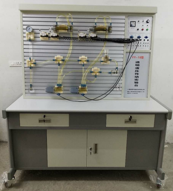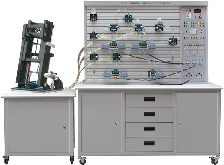 液压与气动技术实验室设备、透明液压实验台、气动实验台、液压元件拆装实训台、透明液压传动演示实验台、液压综合测试实验台、智能液压综合实验台、机电液综合实验台、双面气动传动实验台、液压气动元件陈列柜、液压挖掘机实验台、液压起重机实验台、液压装载机实验台、透明液压推土机实训台、液压叉车控制教学实验台主要承担机电类相关专业《液压与气动技术》课程的专业实验任务。能提供包括液压泵和控制元件结构拆装与分析实验、系统回路控制实验、系统性能实验和气动技术实验在内的不同类型的实验。液压与气动实验室所开设的实验和液压(或气动)行业中的液压系统(或气动系统)的设计、连接调试、维护等紧密相关,通过机-电-液一体化综合控制实验,学生可系统地学习PLC程序设计与调试、液压回路的设计与调试,并且通过硕博软件使相关知识有机地结合在一起,实现对硬件的动作,从而提高各门课程的综合应用能力。